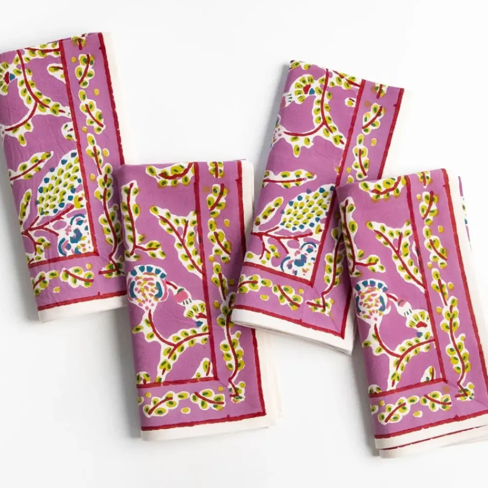 Set your table with the delicate charm of our Climbing Dahlia Lilac Napkins. Hand block printed in an whimsical floral pattern, these napkins bring a burst of color and elegance to any meal. Made from soft, durable cotton, they’re perfect for both everyday dining and special occasions. Sold in sets of four, they make a lovely addition to your table setting.
