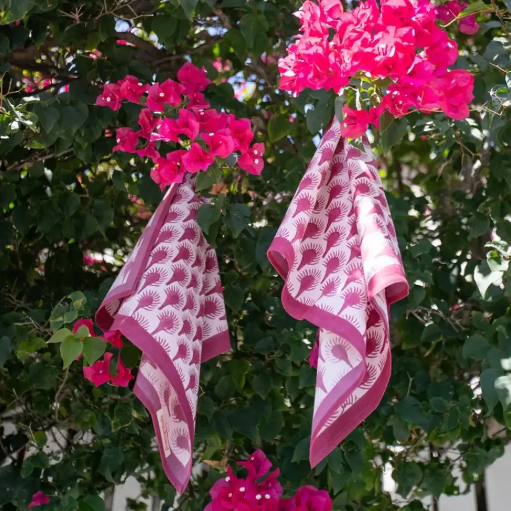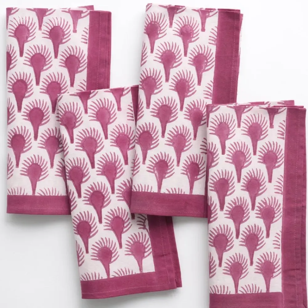 Add a touch of bohemian flair to your dining experience with our Geo Feather Fuchsia Napkins! These hand block printed cloth napkins feature a unique feather print in vibrant fuchsia, perfect for adding a pop of fun and color to your table setting!