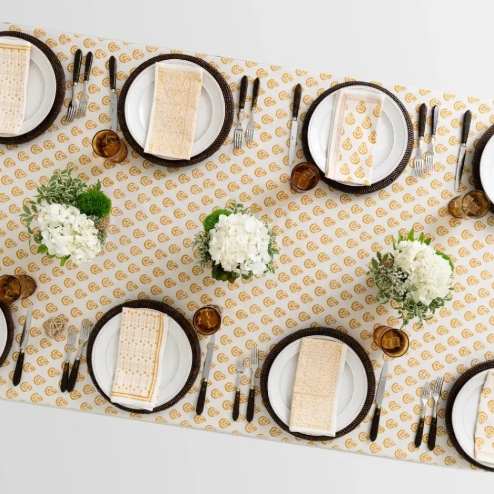 This beautiful 100% cotton, hand blocked printed tablecloth in Carnation Golden is intended to be mixed haphazardly together with the other patterns, just as our families are.
