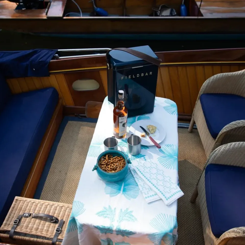 The India Hicks Home Embroidered Twin Palms tablecloths are hand embroidered in India by skilled artisans. The beautiful cotton blend fabric has a slight stretch and resilience to it, creating a keepsake that can be brought out for your favorite dinner guests for years to come.