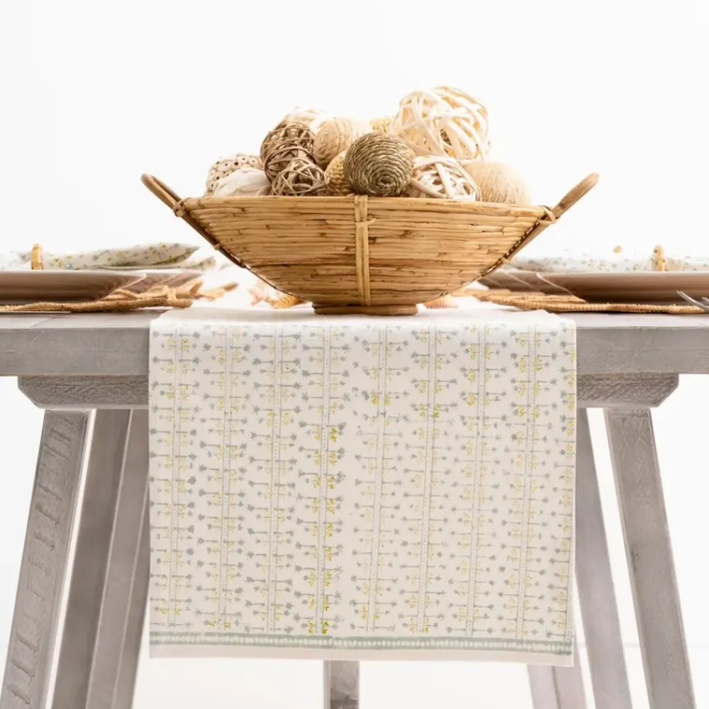 This beautiful 100% cotton, hand blocked printed Table Runner in Palm Avenue Seafoam is intended to be mixed haphazardly together with the other patterns, just as our families are.