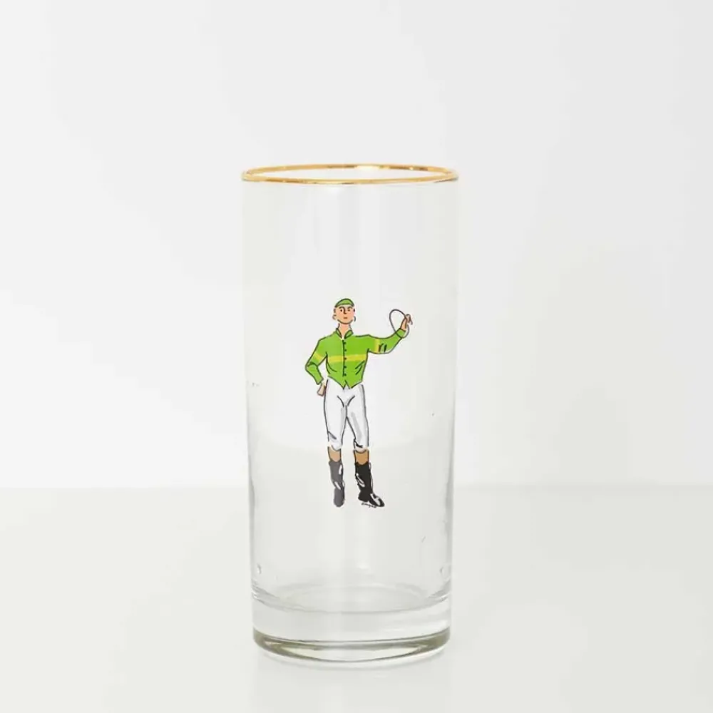 Off to the races! For the equestrian enthusiast, elevate your glassware collection with our Jockey Silks Highball Glasses. Featuring four unique jockeys in bright colored silks and a gold metallic rim, this glass brings sophistication to both everyday and formal gatherings.