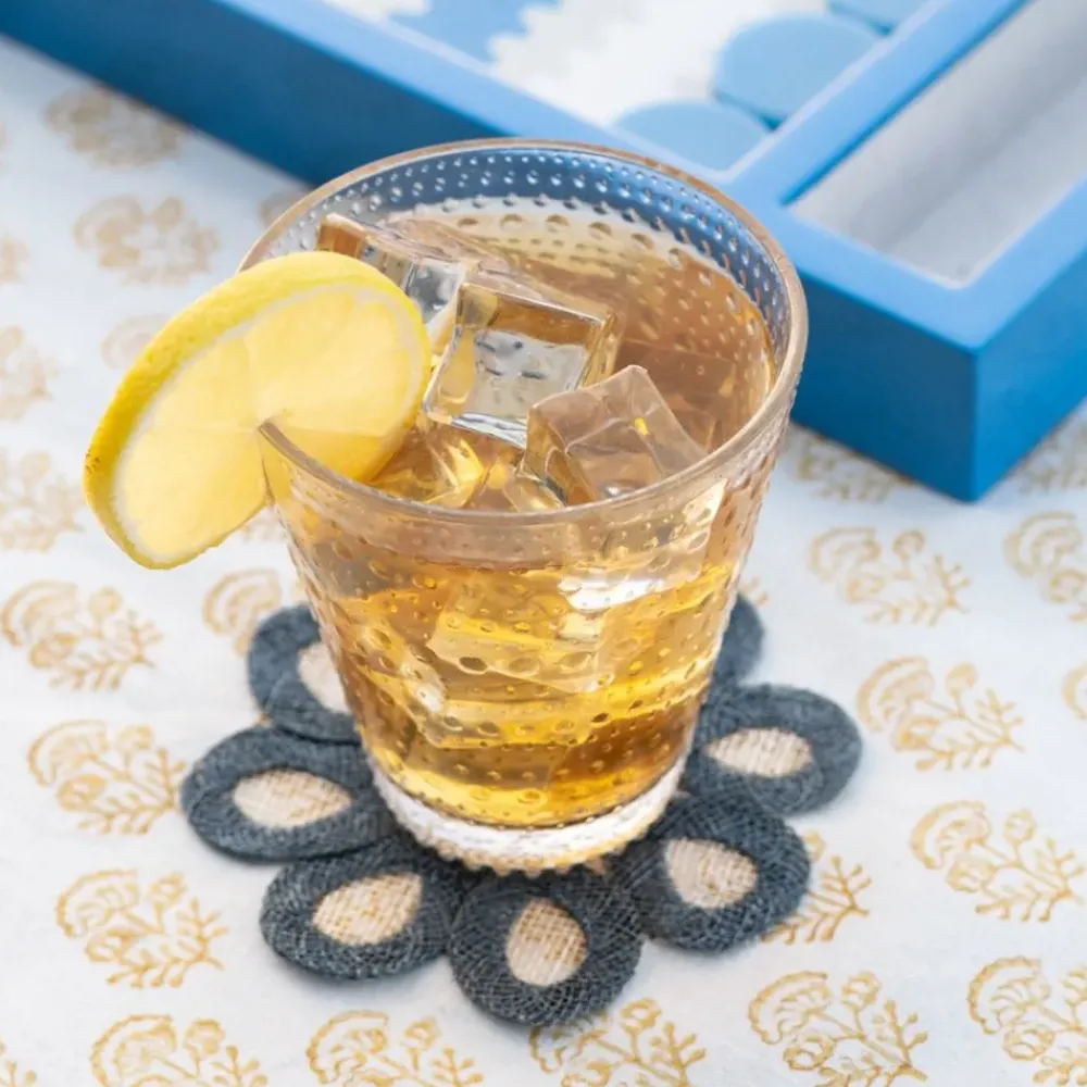 Elevate your table setting with our exclusive Woven Doodle Coasters in Lead, designed to inject a touch of fun and festivity to your table or bar. Crafted with practicality in mind, these coasters effortlessly withstand daily use, while retaining an air of sophistication suitable for your most elegant gatherings or a casual ladies brunch. Complete the look by pairing them with our coordinating natural fiber Doodle Placemats or experiment with a mix of your preferred hues from our selection of 10 vibrant colors!