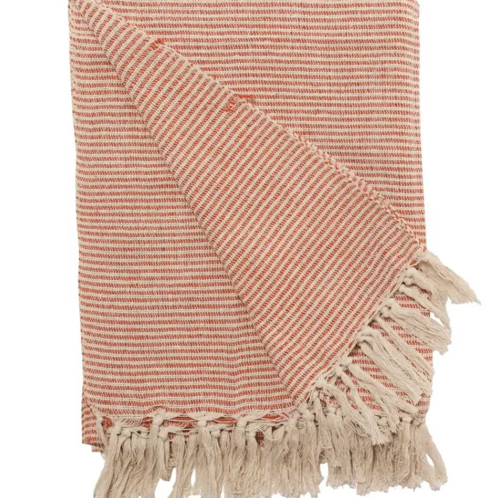 Introduce a burst of rich, inviting color to your home with our Striped Woven Throw Blanket in Persimmon. This throw, made from recycled cotton, offers both comfort and style. The deep orange tones evoke a sense of coziness, making it a great addition to your living room or bedroom decor. The fringe adds a touch of sophistication to this eco-friendly piece.