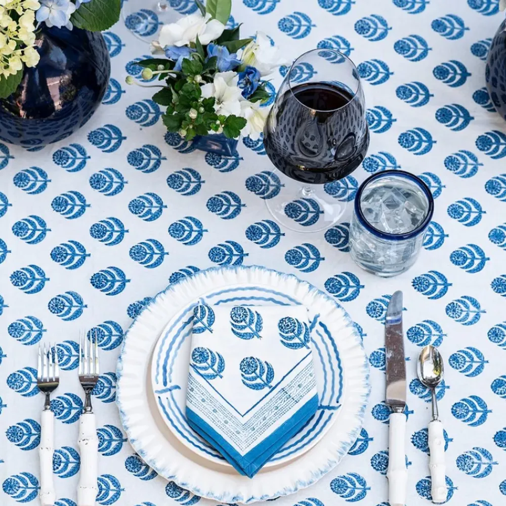 Our latest exclusive periwinkle blue and white print is refreshing yet cool. traditional and exotic, all at the same time. Cheer up your table with the Pantone color of the year, blue and white updated Indian motif napkin, and pair with matching tablecloths and placemats. A perfect gift for your mom, best friend, neighbor…oh, and for you!