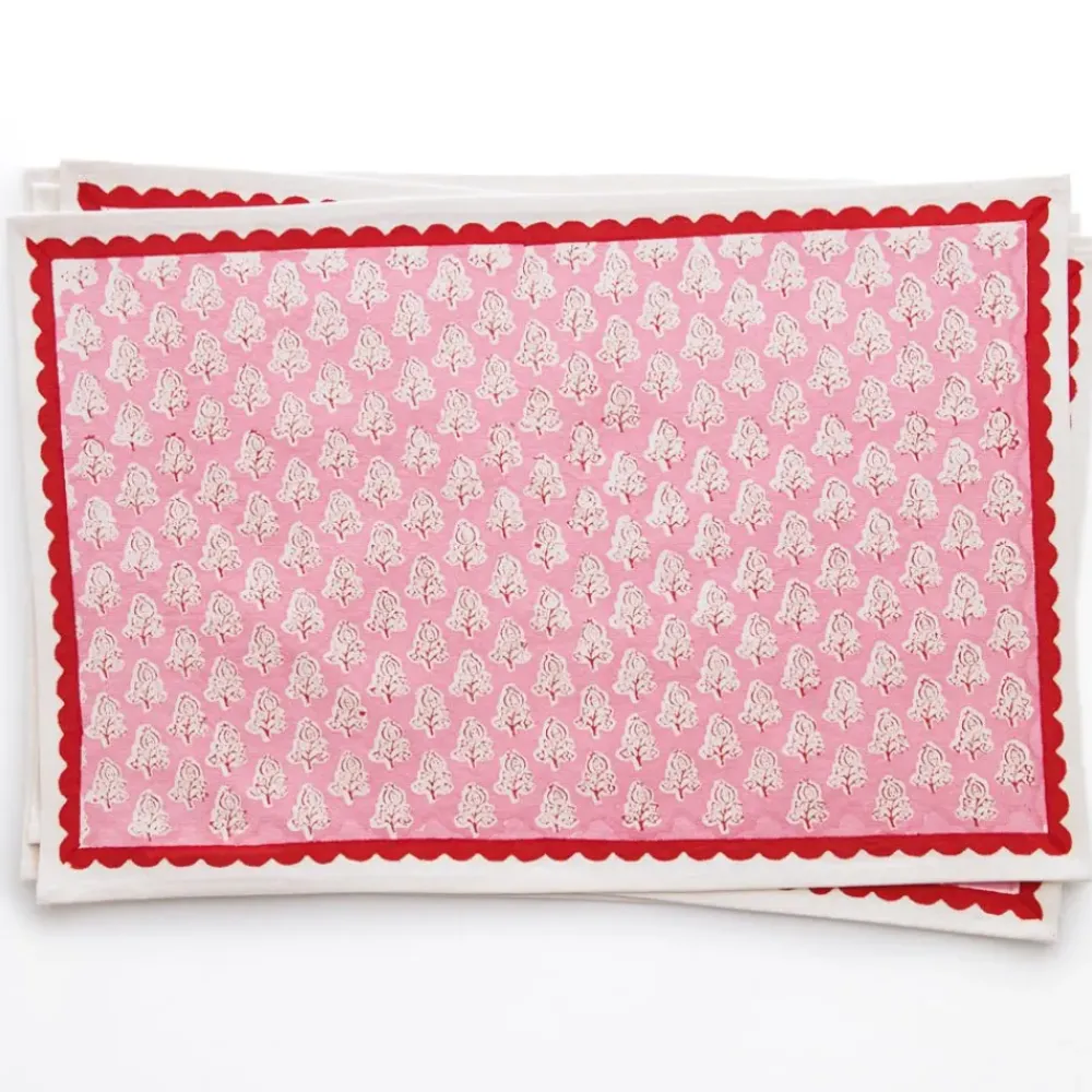 Elevate your table setting with the Pom Buti Pink Placemats. These placemats combine a delicate floral design with a playful scalloped edge, all printed in a lively pink hue. Perfect for brunches, garden parties, or festive dinners, these hand block-printed placemats add a touch of sophistication and warmth to any meal.