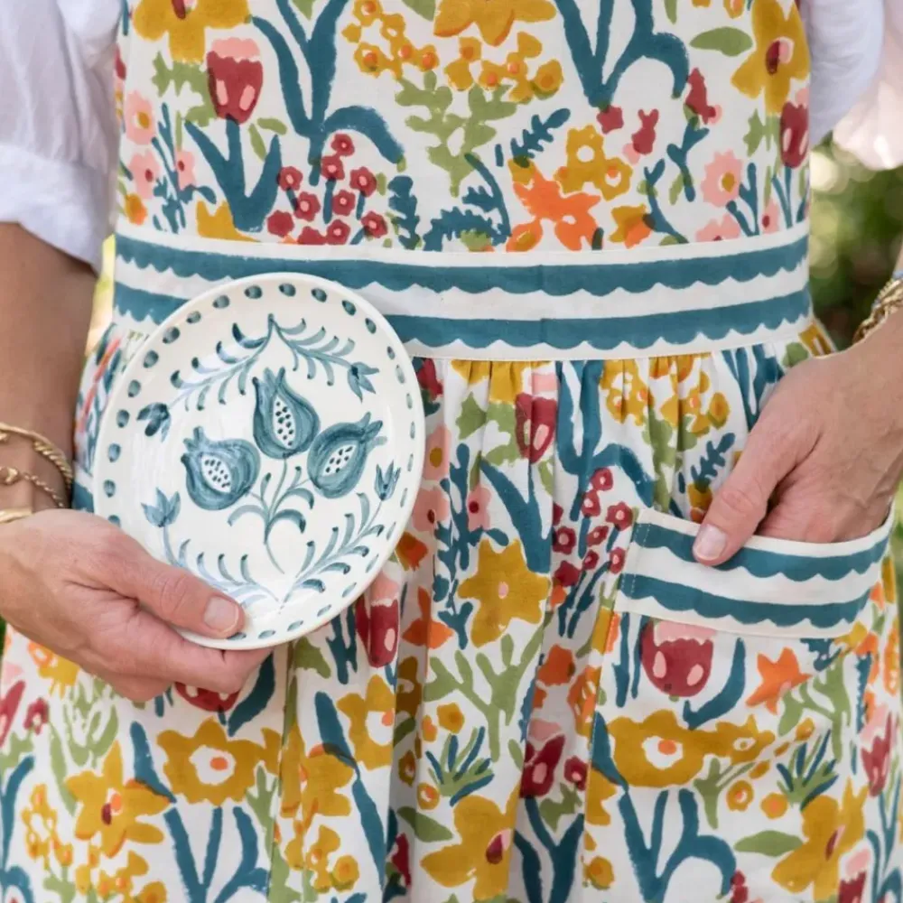 Hand-painted with a cheerful teal pomegranate motif, our ceramic Pomegranate Trio Vine Teal Appetizer Plates are perfect for small servings of hors d’oeuvres or desserts. Designed by Pomegranate’s founder and creative director, Angela Beck, to bring a fun sophisticated look to your table! The set of 4 appetizer plate’s intricate design and soft hues create a refined yet relaxed look that suits both casual gatherings and elegant events with friends.