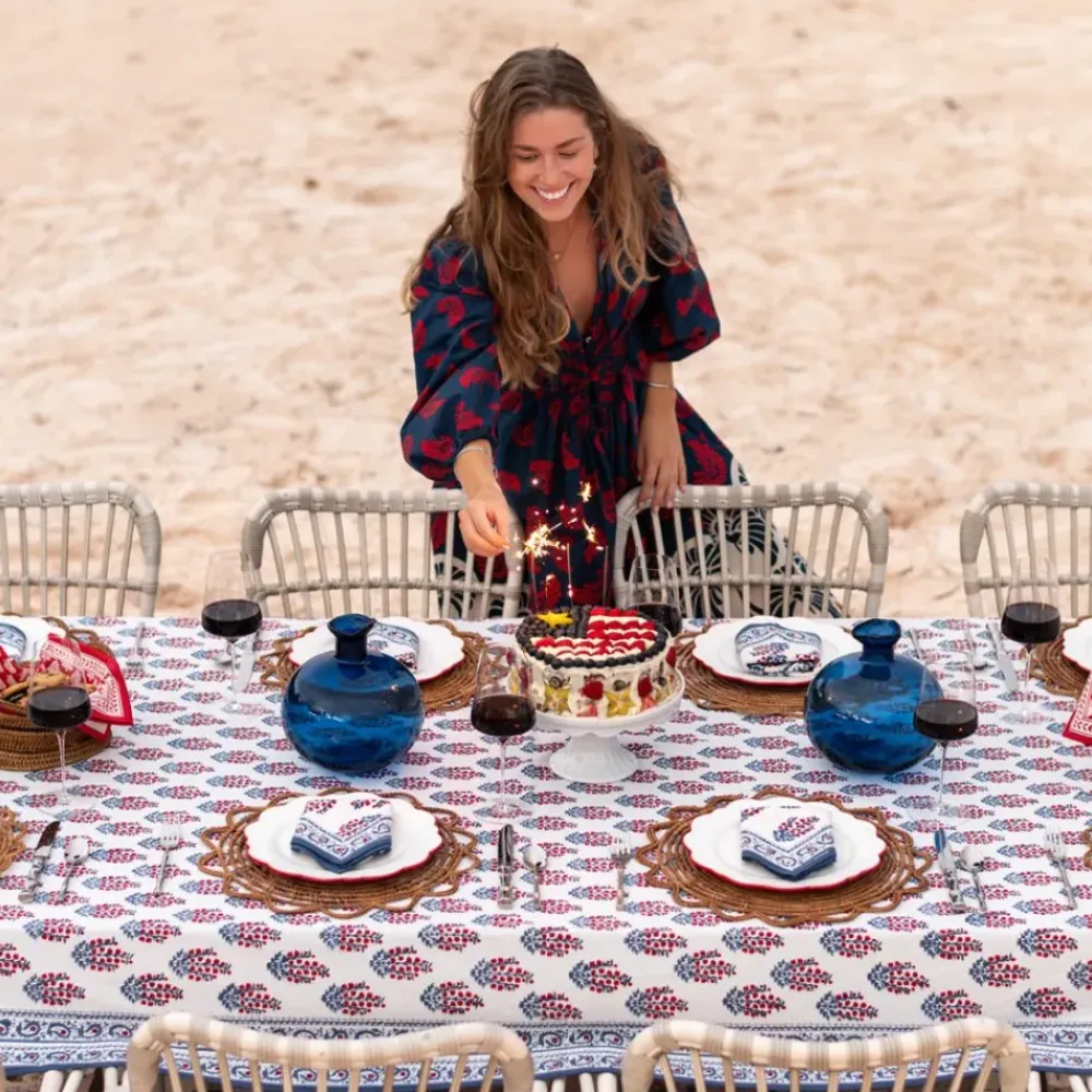 Infuse your dining room with the cultural charm of Central India’s Sagar District with our Sagar Red & Blue Tablecloth. Featuring a hand block printed botanical design in vibrant red and soothing blue tones, this tablecloth is a true testament to the region’s beauty. Made from premium fabric, it not only adds a touch of elegance to your table setting but also provides durability and easy maintenance, making it a perfect choice for any occasion.