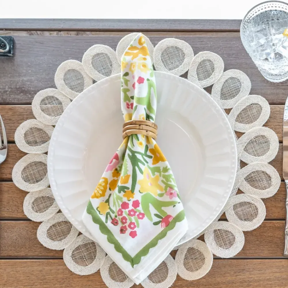 Our exclusive Woven Doodle Placemat in Bone will add just the right amount of fun & festivity to your table! These round natural fiber placemats wipe clean with a damp cloth so they are practical for everyday use, yet they remain elegantly refined for your finest dinner party. Semi-transparent natural fiber with a hand-appliquéd border are woven together to create the perfect frame for each plate at your table.