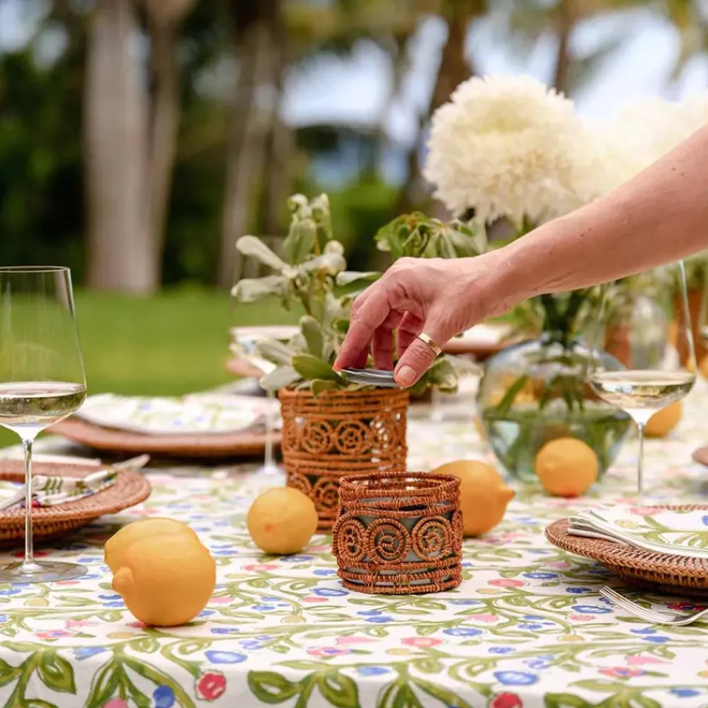Our exclusively hand crafted votive candle/large vase holders are the perfect addition to your chic and casual table. Beautiful details in the natural woven technique bring an elevated yet relaxed mood to your table setting. Versatile design opens up the end use possibilities; votive candle, vase, even a perfect utensil and napkin holder for your casual buffet.