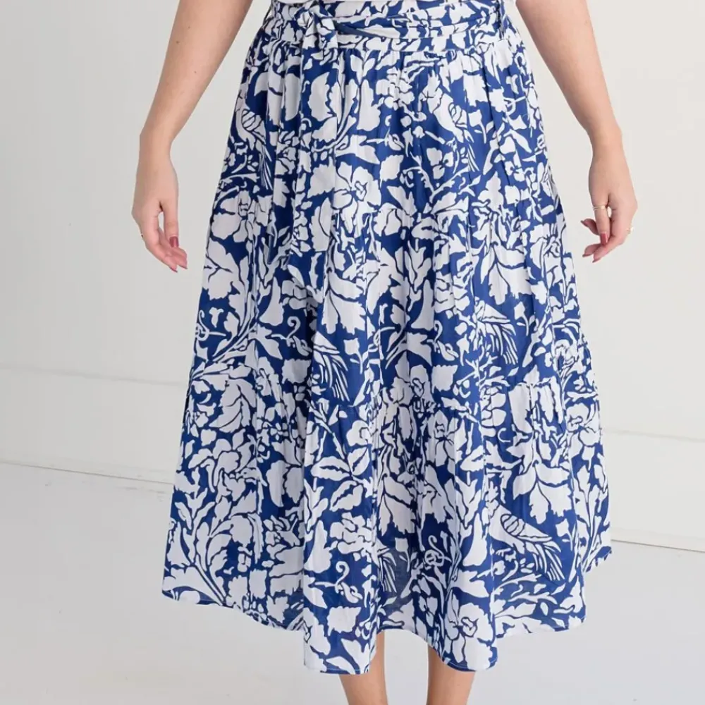 Be the talk of the town with our Blue Parrot Tiered Skirt! This breezy mid-length skirt is the ideal item for those fashion-forward folks that want to stand out in the crowd. The combination of the bright blue material, the exciting white pattern of florals and parrots, plus the graceful ruffles create an ensemble that won’t soon be forgotten!