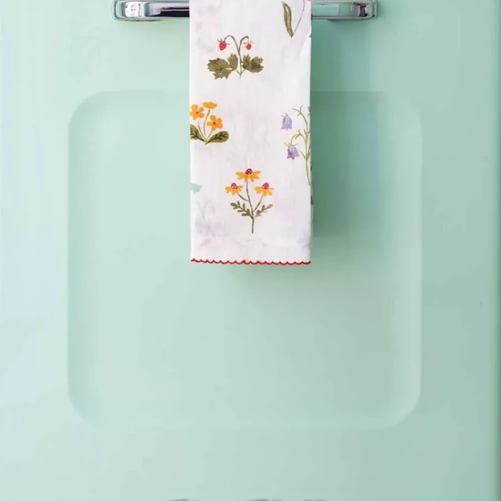 As fresh as an organic cutting garden, our Botanical Garden print is crisp and distinctive, with fresh red poppy flowers, miniature yellow daffodils and lavender bluebells floating on a soft white linen base. Edged with a red scalloped stitch, this exclusive printed design is seasonless; perfect for everyday and elevated entertaining.