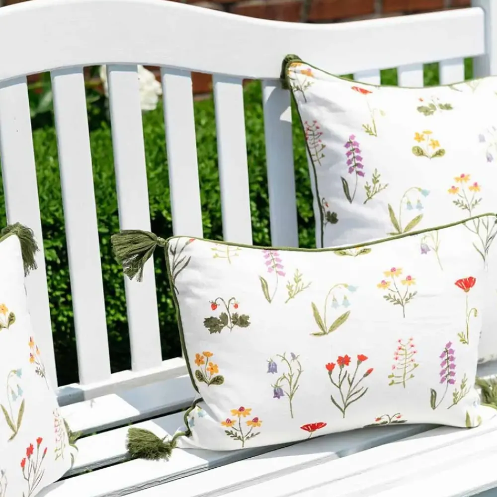 As fresh as an organic cutting garden, our Botanical Garden print is crisp and distinctive, with fresh red poppy flowers, miniature yellow daffodils and lavender bluebells floating on a soft white linen base. Edged with a red scalloped stitch, this exclusive printed design is seasonless; perfect for everyday and elevated entertaining.