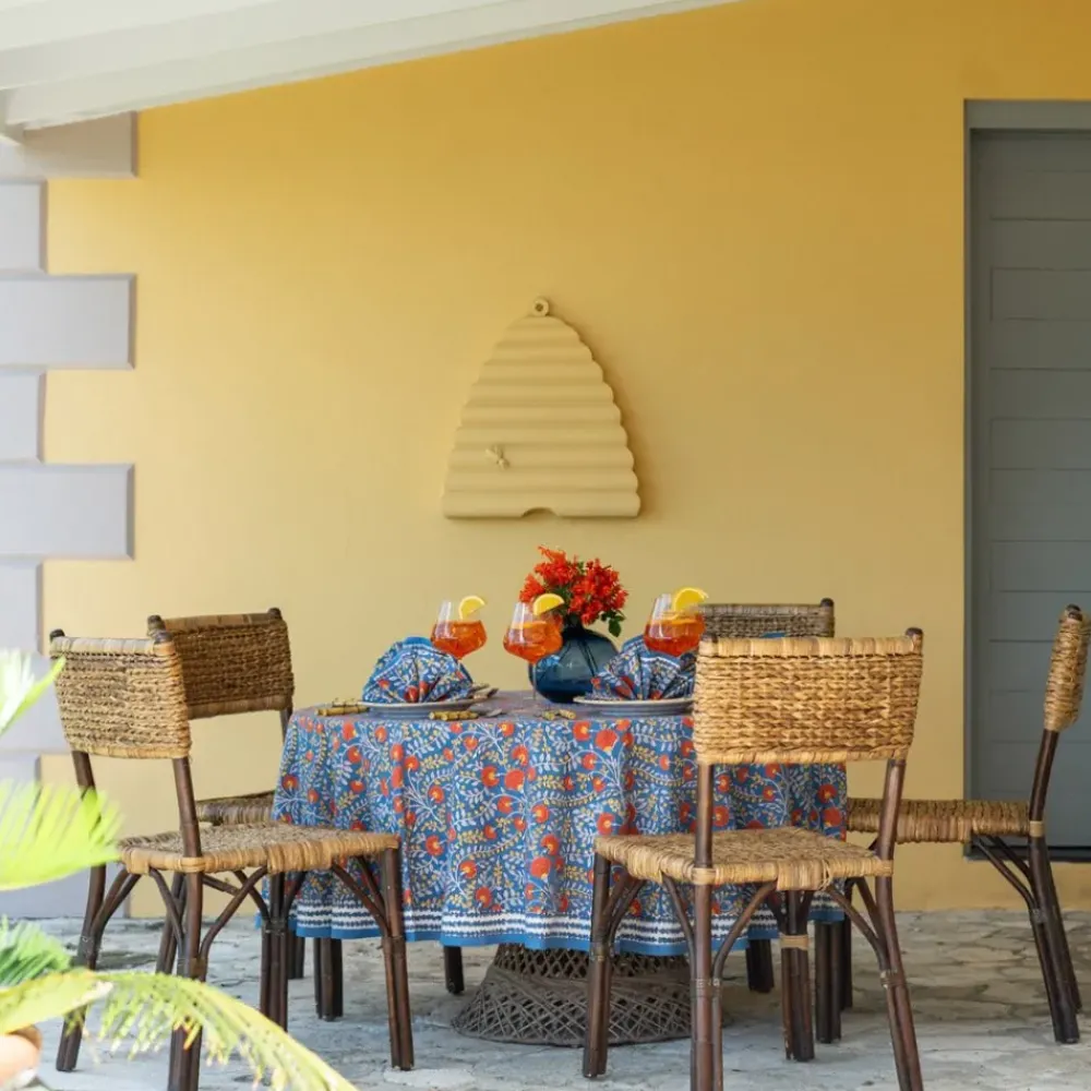 Set the stage for memorable meals with our Cactus Flower Blue & Poppy Tablecloth. Crafted from premium cotton and featuring a whimsical print with a tranquil blue background and lively poppy orange flowers, this tablecloth instantly enlivens any dining space. Whether for everyday use or special occasions, its vibrant design and superior quality make it a delightful addition to your table decor.