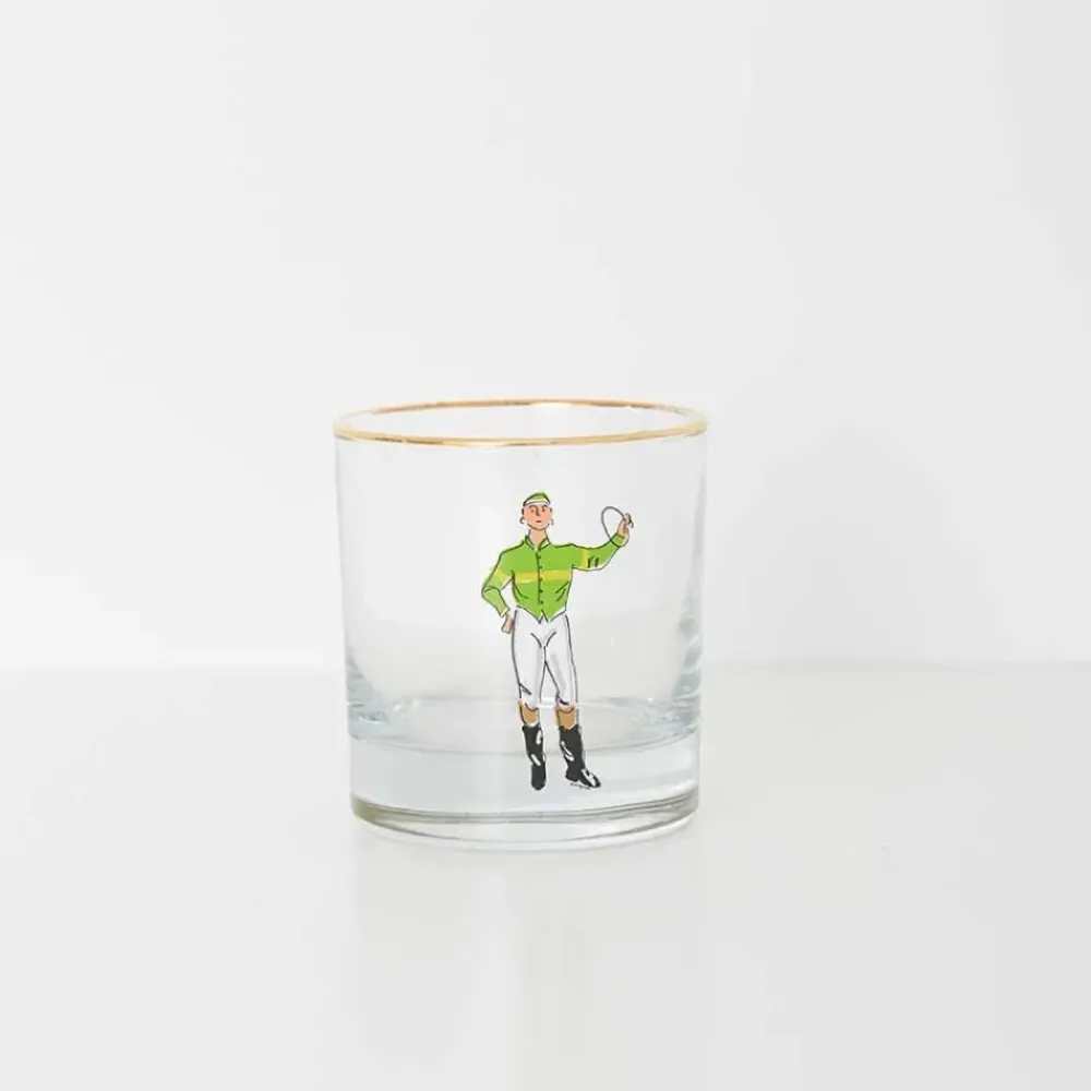 Off to the races! For the equestrian enthusiast, elevate your barware collection with our Jockey Glassware. Featuring four unique jockeys in bright colored silks and a gold metallic rim, this glass brings sophistication to everyday and formal gatherings.