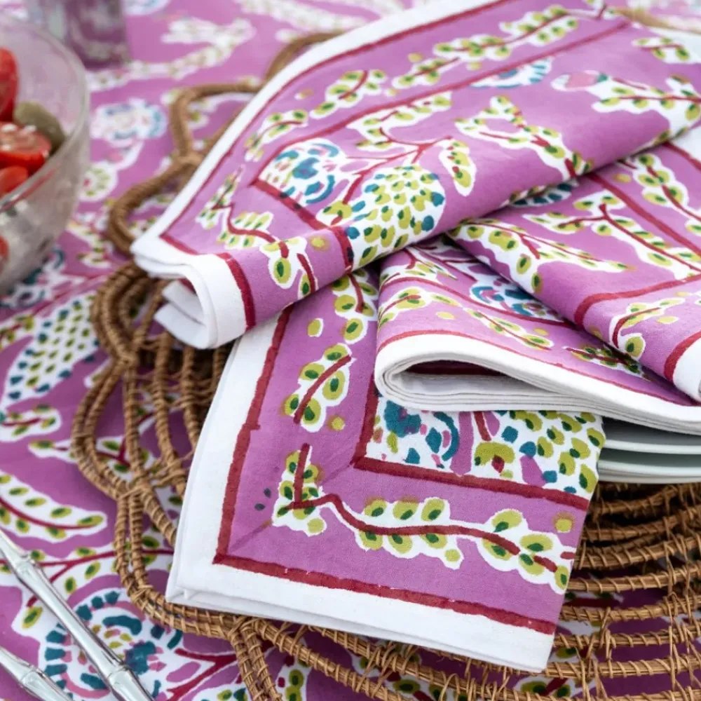 Set your table with the delicate charm of our Climbing Dahlia Lilac Napkins. Hand block printed in an whimsical floral pattern, these napkins bring a burst of color and elegance to any meal. Made from soft, durable cotton, they’re perfect for both everyday dining and special occasions. Sold in sets of four, they make a lovely addition to your table setting.