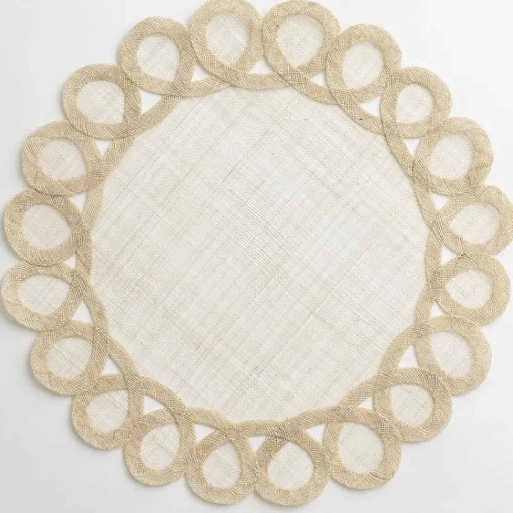 Our exclusive Woven Doodle Placemat in Ecru will add just the right amount of fun & festivity to your table! These round natural fiber placemats wipe clean with a damp cloth so they are practical for everyday use, yet they remain elegantly refined for your finest dinner party. Semi-transparent natural fiber with a hand-appliquéd border are woven together to create the perfect frame for each plate at your table.