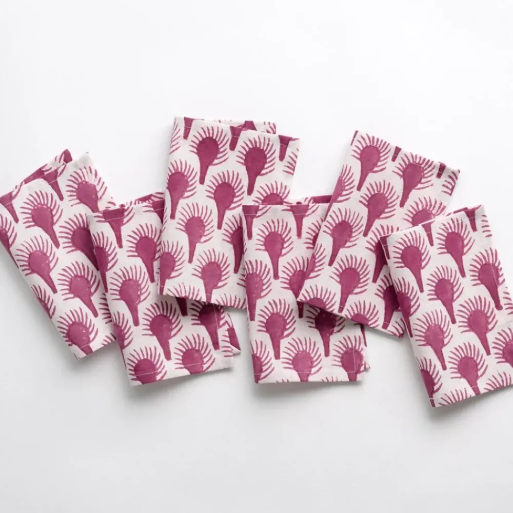 Get ready to elevate your cocktail game with our Geo Feather Fuchsia Cocktail Napkin set! These cloth napkins feature a playful bohemian feather pattern in vibrant fuchsia. Add some fun and flair to your next gathering. Cheers!