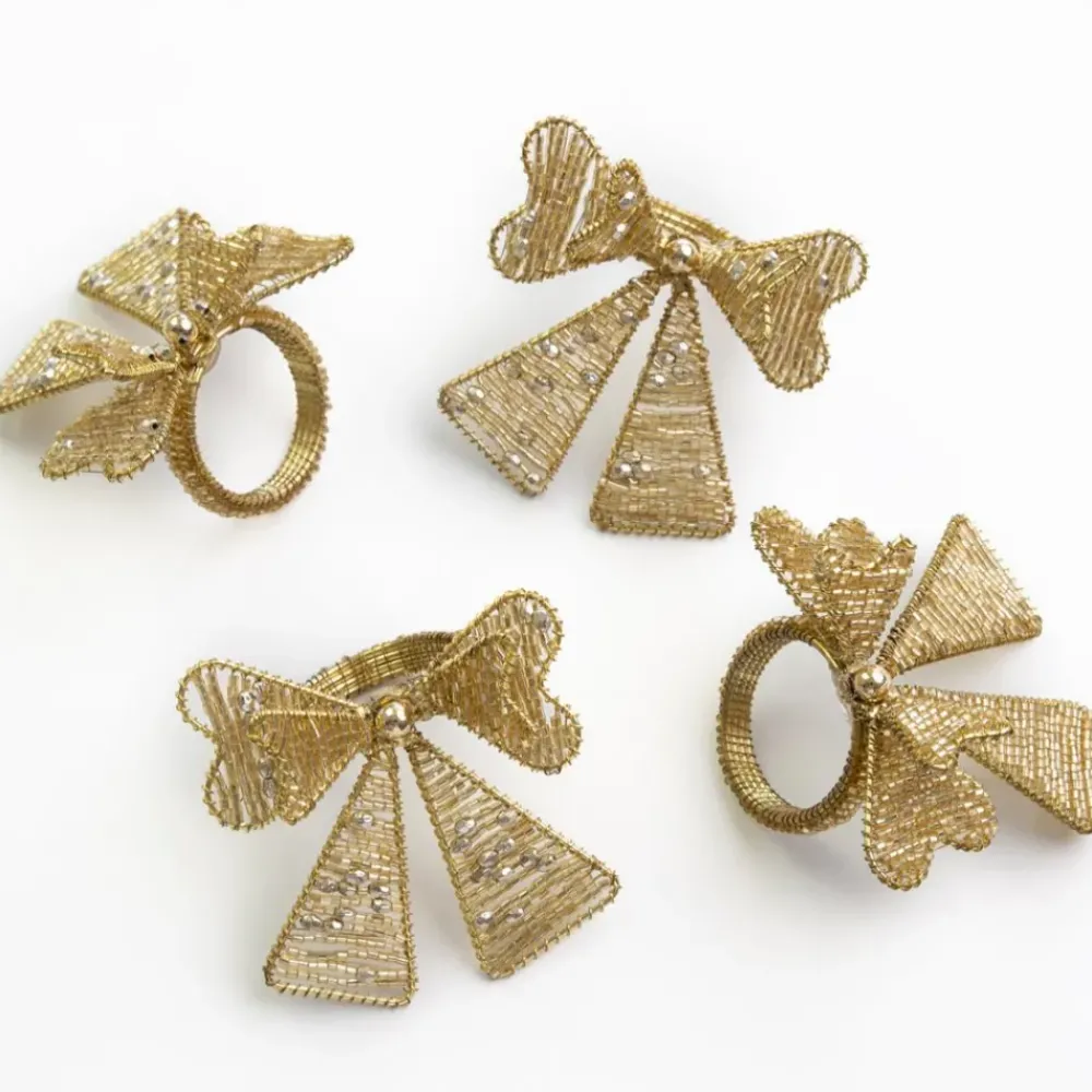 Pomegranate Inc Gold Bow Beaded Napkin Ring | Set of 4 Sale