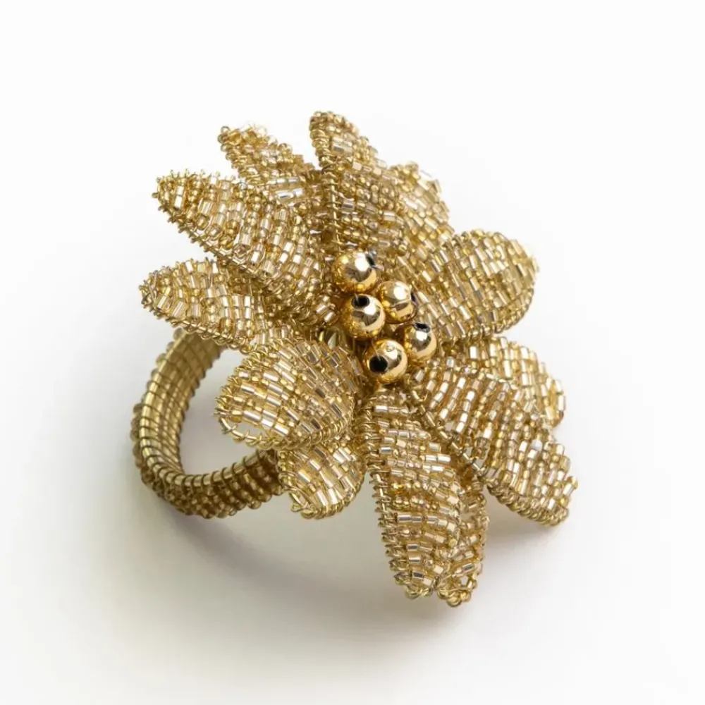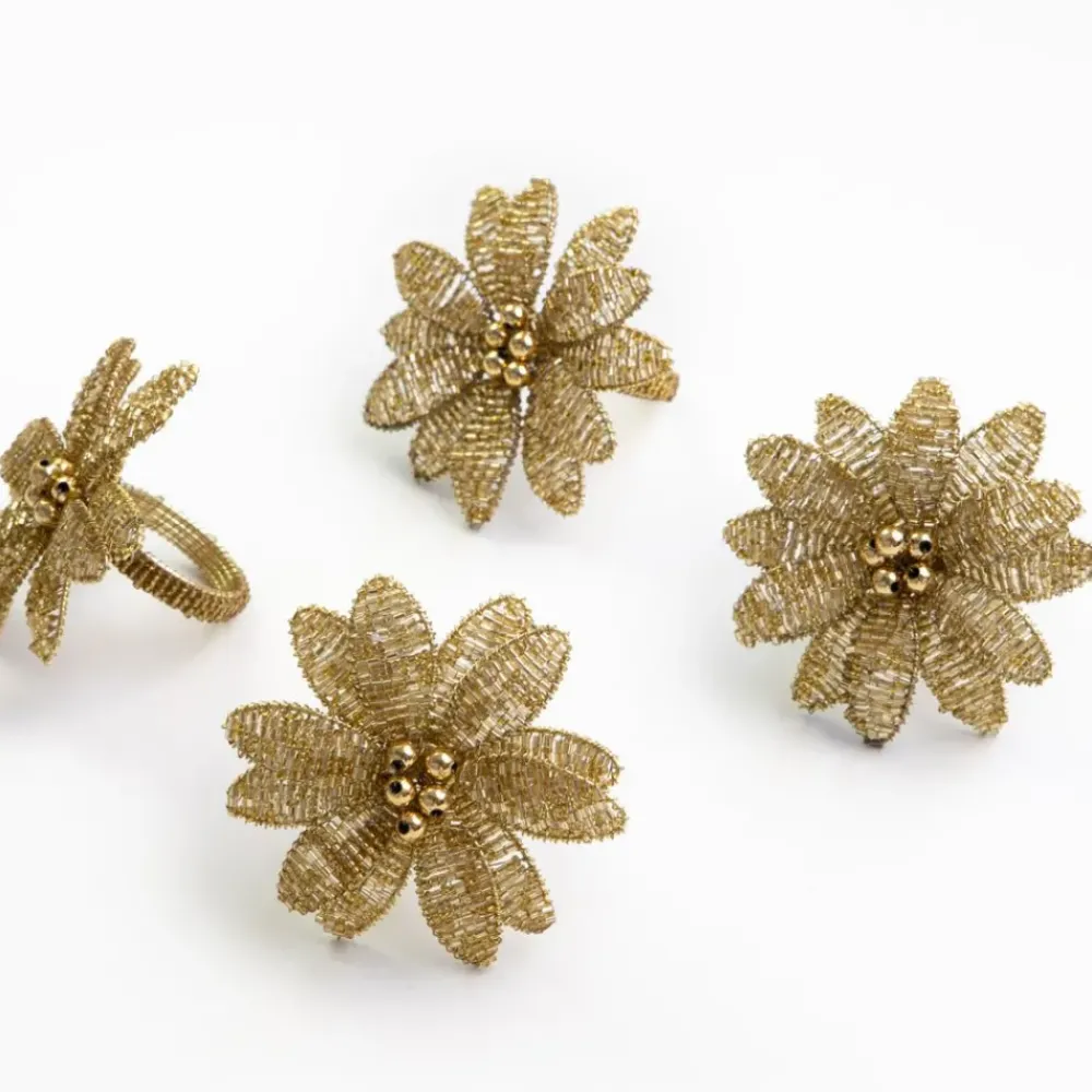 Pomegranate Inc Gold Flower Beaded Napkin Ring | Set of 4 Clearance