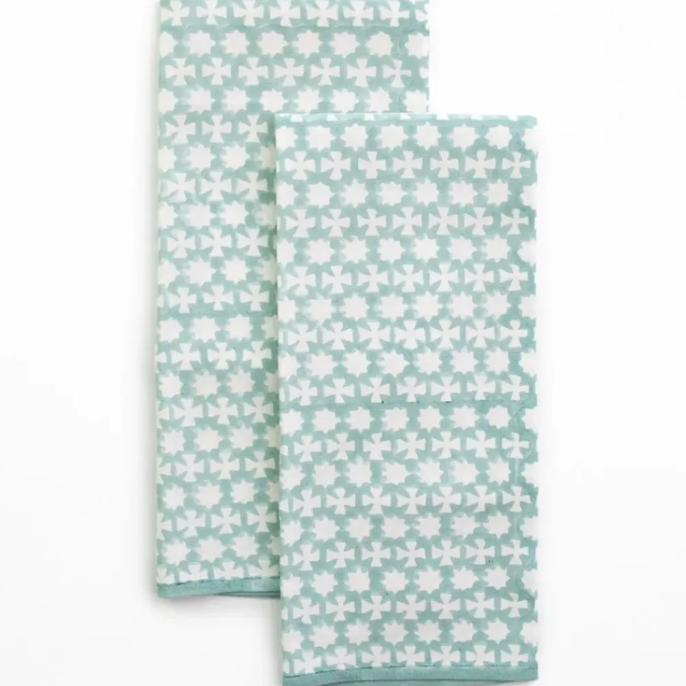 Our Cuban Cross Palladian Blue Tea Towels showcase this pattern in a soothing blue hue, reminiscent of serene Caribbean waters. Crafted from high-quality, 100% cotton, these tea towels offer both softness and durability.