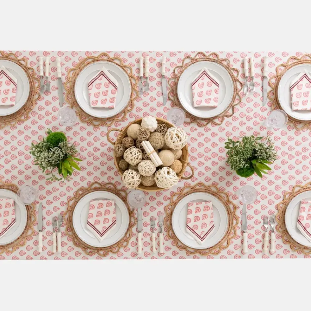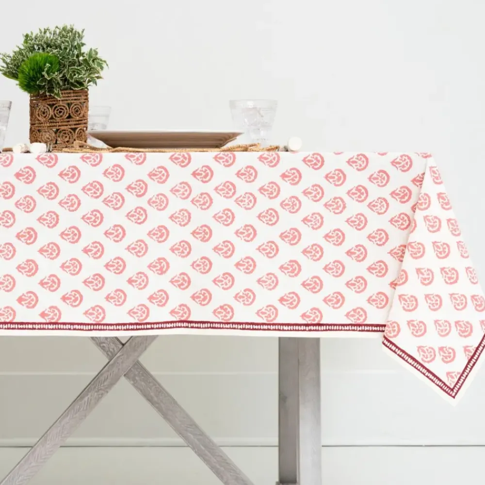This beautiful 100% cotton, hand blocked printed tablecloth in Carnation Blush is intended to be mixed haphazardly together with the other patterns, just as our families are.