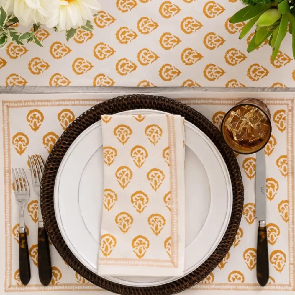 This beautiful set of 100% cotton hand blocked printed placemats in Carnation Golden is intended to be mixed haphazardly together with the other patterns, just as our families are.