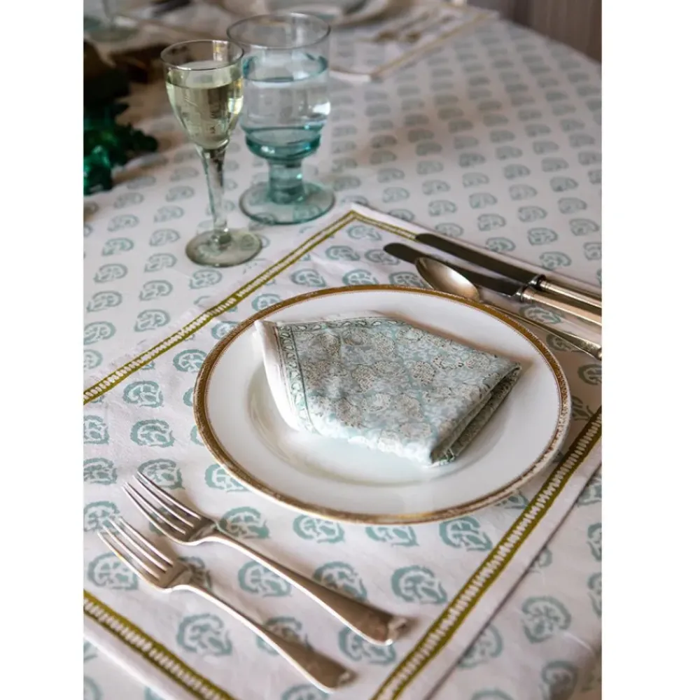 This beautiful set of 100% cotton hand blocked printed napkins in Carnation Seafoam is intended to be mixed haphazardly together with the other patterns, just as our families are.