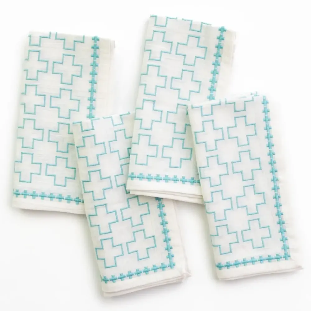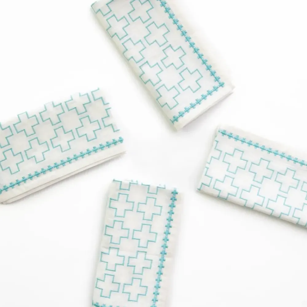 The India Hicks Home Embroidered Grand Cross napkins are embroidered in India by skilled artisans using hand-guided embroidery techniques. The beautiful cotton blend fabric has a slight stretch and resilience to it, creating a keepsake that can be brought out for your favorite dinner guests for years to come.