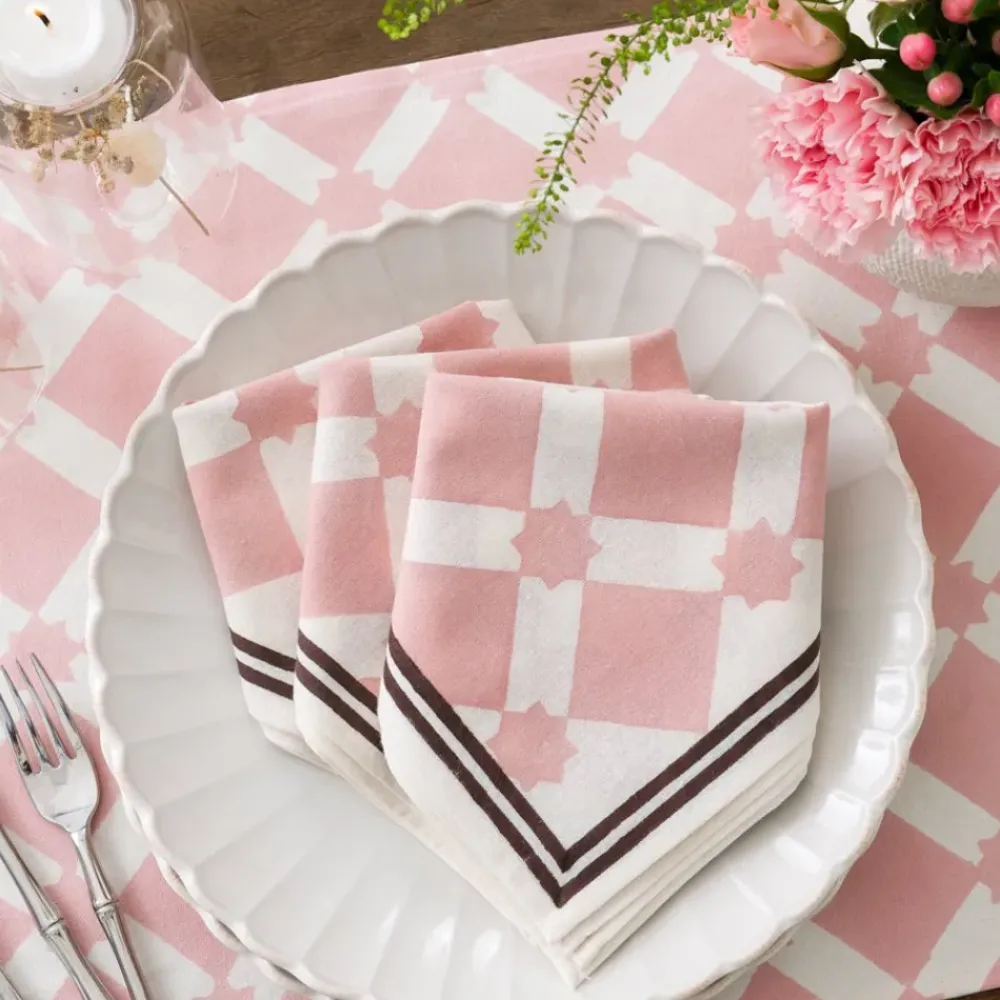 Our Latticework Blush Cloth Napkins were inspired by memories of falling in love. Crafted with care and attention to detail, each 100% cotton cloth napkin features a delicate lattice pattern that evokes charm and sophistication.