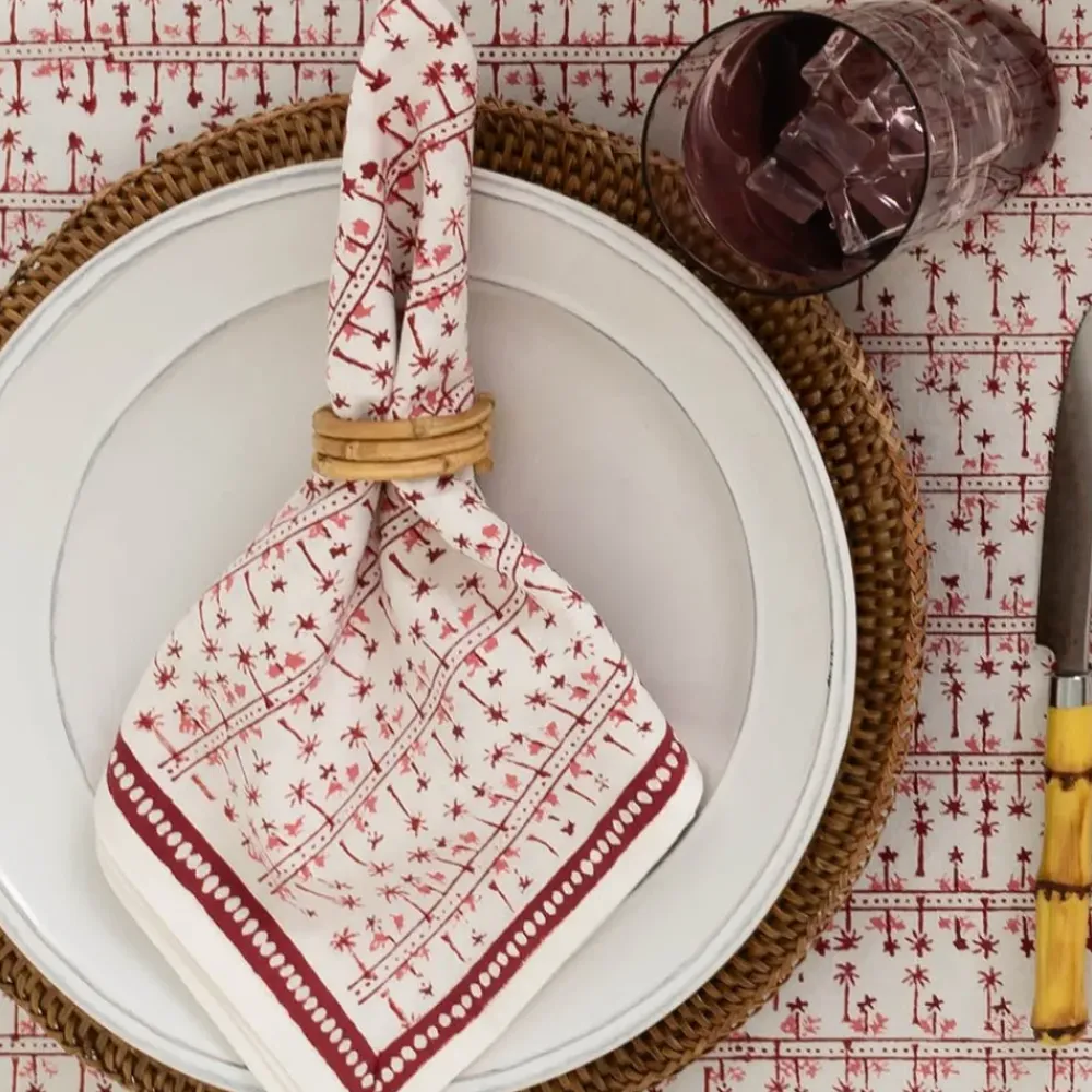 This beautiful set of 100% cotton hand blocked printed napkins in Palm Avenue Blush is intended to be mixed haphazardly together with the other patterns, just as our families are.