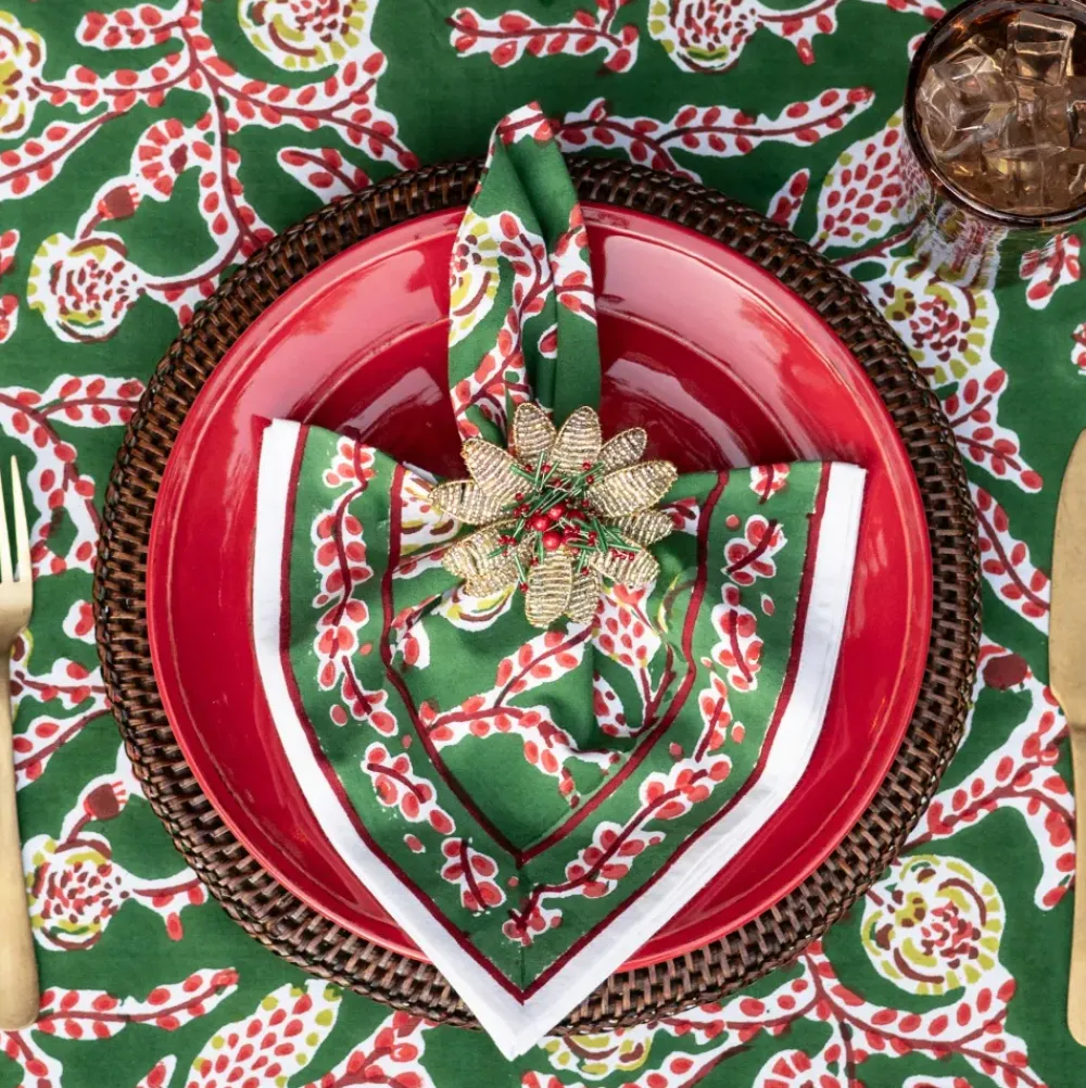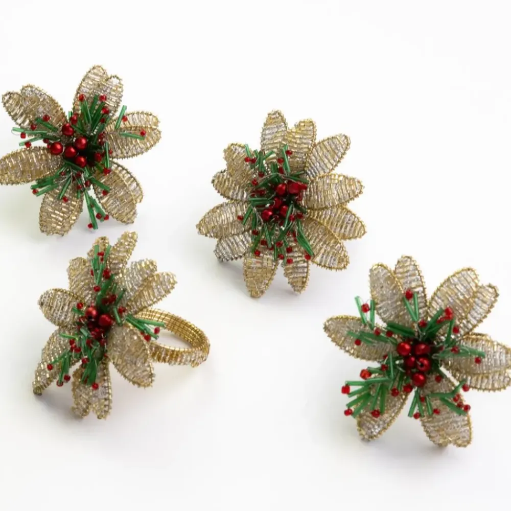 Bring cheer to your table with this Set of 4 Multi Flower Beaded Napkin Rings. Featuring an eye-catching blend of red, green, and gold beads shaped into festive flowers, these rings add a fun and festive touch to your seasonal or every day gatherings.