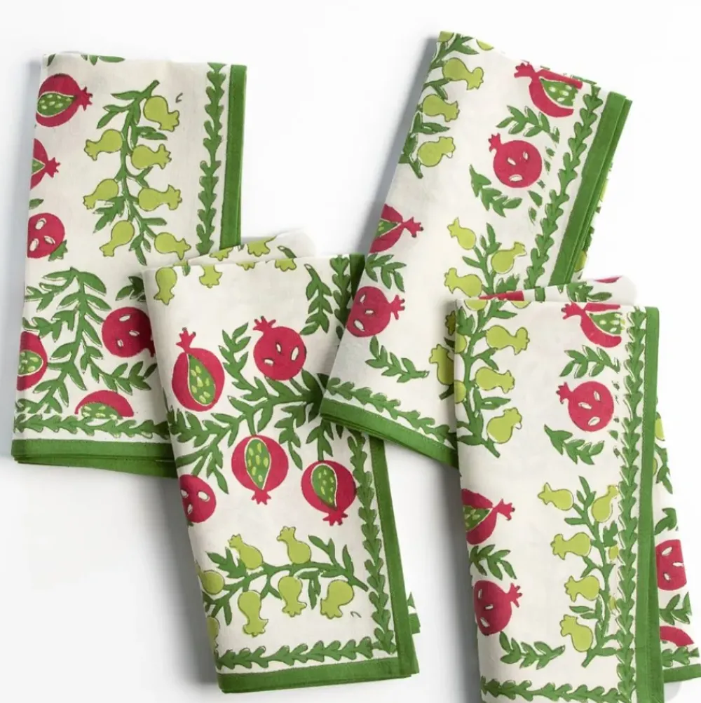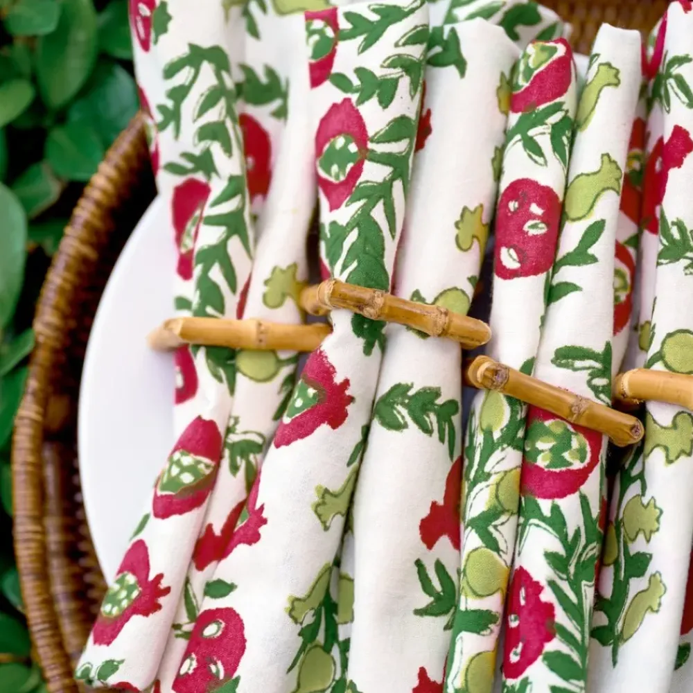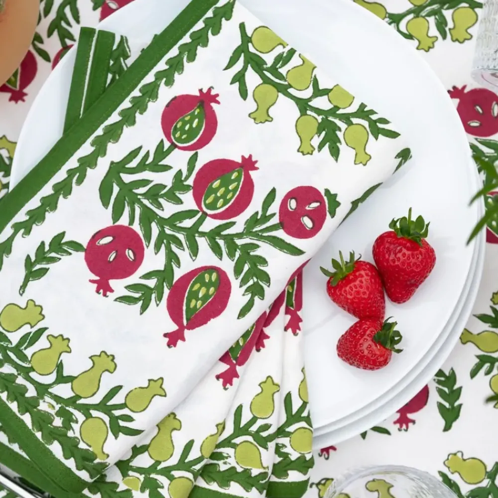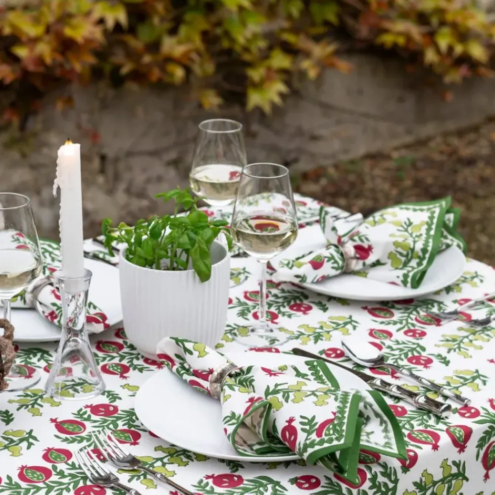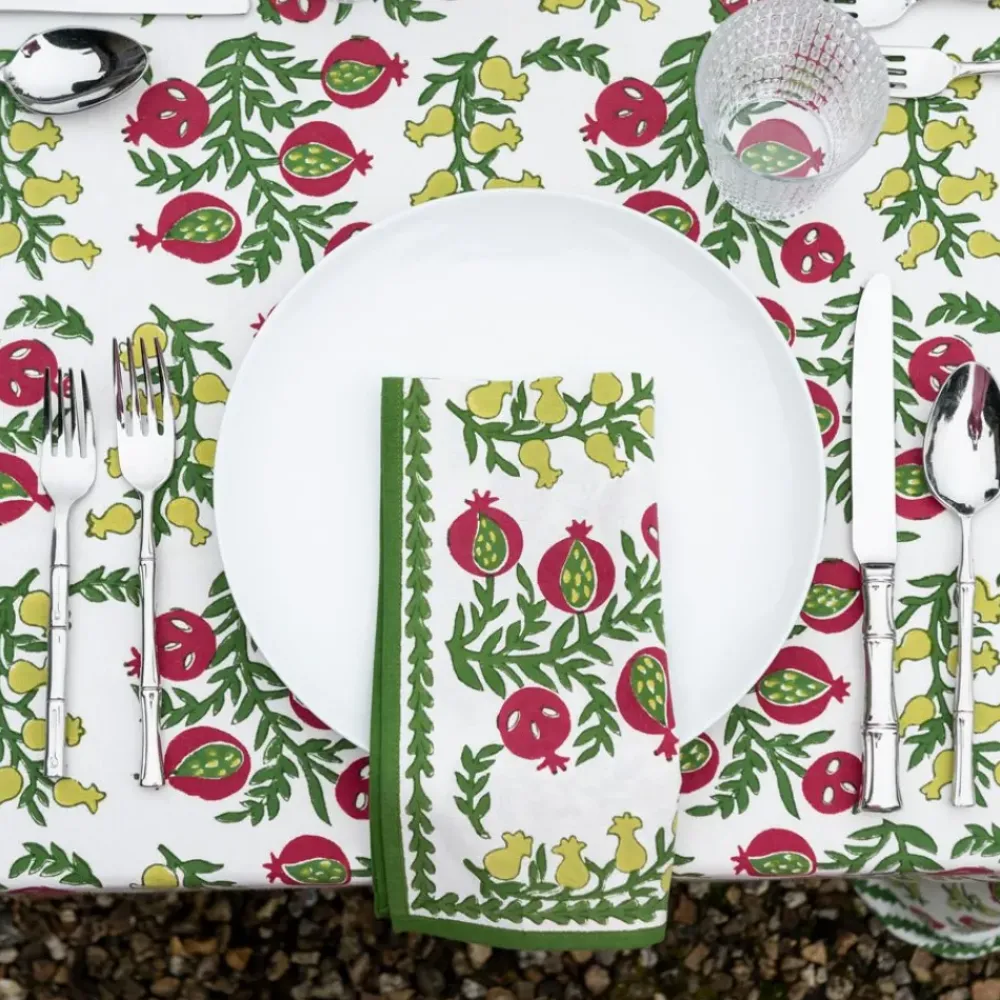 These cheerful hand block printed napkins will brighten up your table and cheer up your day. Perfect for casual everyday use as well as entertaining and gatherings with family and friends. Inside, outside, in the garden and up in the mountains, they fit in everywhere! Pair with matching tablecloth and placemats to complete the elegant yet casual look.