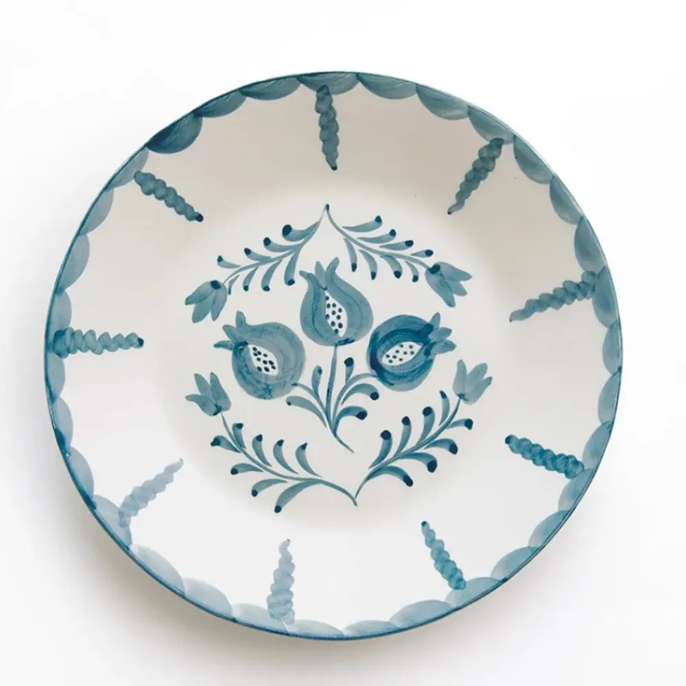 Set the table with our hand-painted ceramic Pomegranate Trio Vine Teal Salad Plates. Designed by Pomegranate founder and creative director, Angela Beck, each plate is beautifully hand-painted in Portugal with a stylized teal pomegranate vine pattern and framed by a soft scalloped edge. The set of 2 plates are perfect for serving salads, sides, or light meals, and add a brilliant pop of color to any occasion. Pair with the Pomegranate Trio Vine Teal Dinner Plate and Appetizer Plate to complete the look!