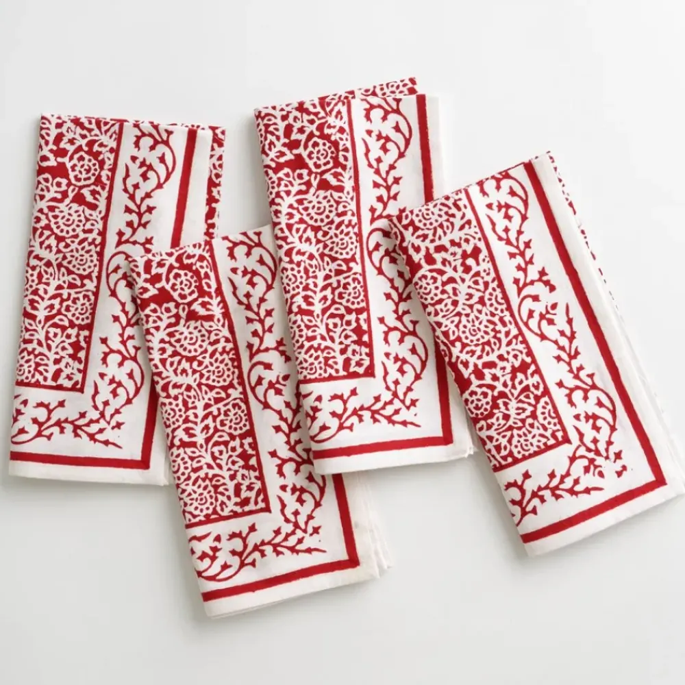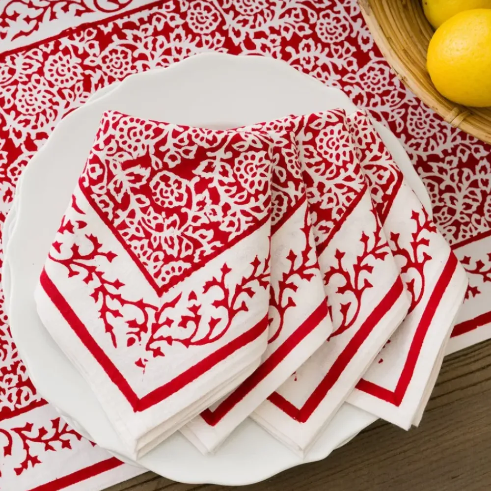 This Tapestry Deep Red napkin, a traditional block-printed design in red and white, is intended to represent the weaving of stories that are part of meals with family, friends, and guests. Its beauty highlights the importance of the details, and helps create a narrative of your entertaining experiences.