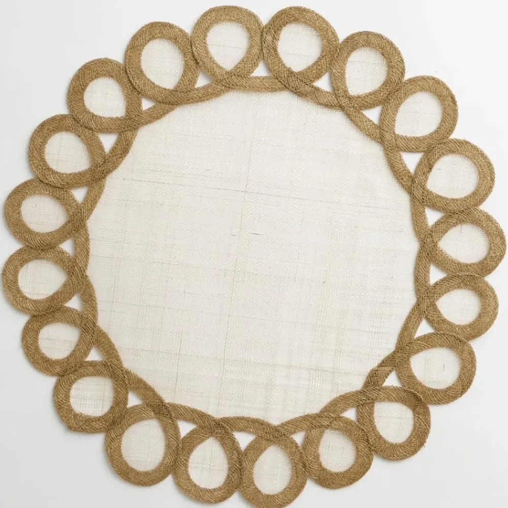 Our exclusive Woven Doodle Placemat in Toast will add just the right amount of fun & festivity to your table! These round natural fiber placemats wipe clean with a damp cloth so they are practical for everyday use, yet they remain elegantly refined for your finest dinner party. Semi-transparent natural fiber with a hand-appliquéd border are woven together to create the perfect frame for each plate at your table.