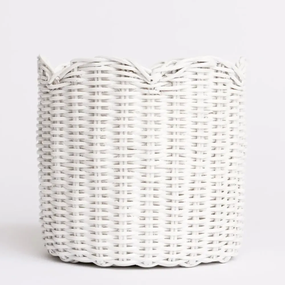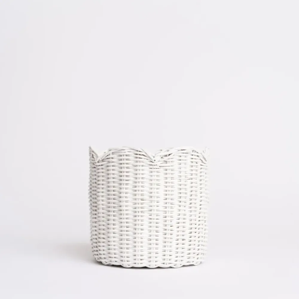 Indulge in the artfully crafted White Wicker Scalloped Containers, perfect for storing a variety of items and infusing your decor with rustic charm. These versatile containers come in three sizes to satisfy all your needs, and are expertly woven with premium white wicker for lasting durability and timeless elegance. Make a statement at your dining table or use them throughout your home for a touch of natural beauty and practicality.